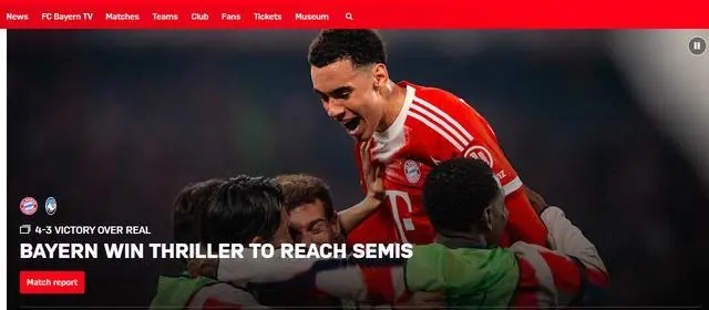 拜仁官网对本场比赛的报道截图。