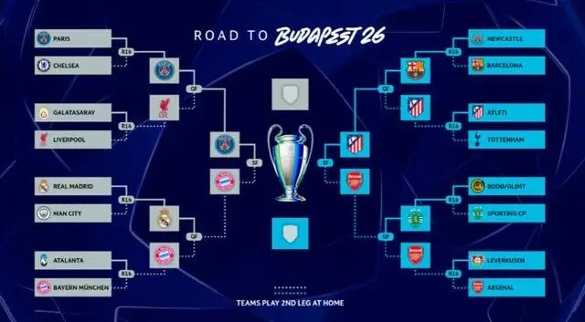 欧冠官网发布的晋级路线图,四强队伍全部产生。