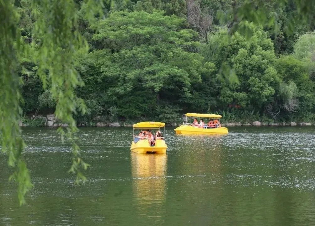 在公园内骑行穿梭林荫道、划船赏湖景🚣