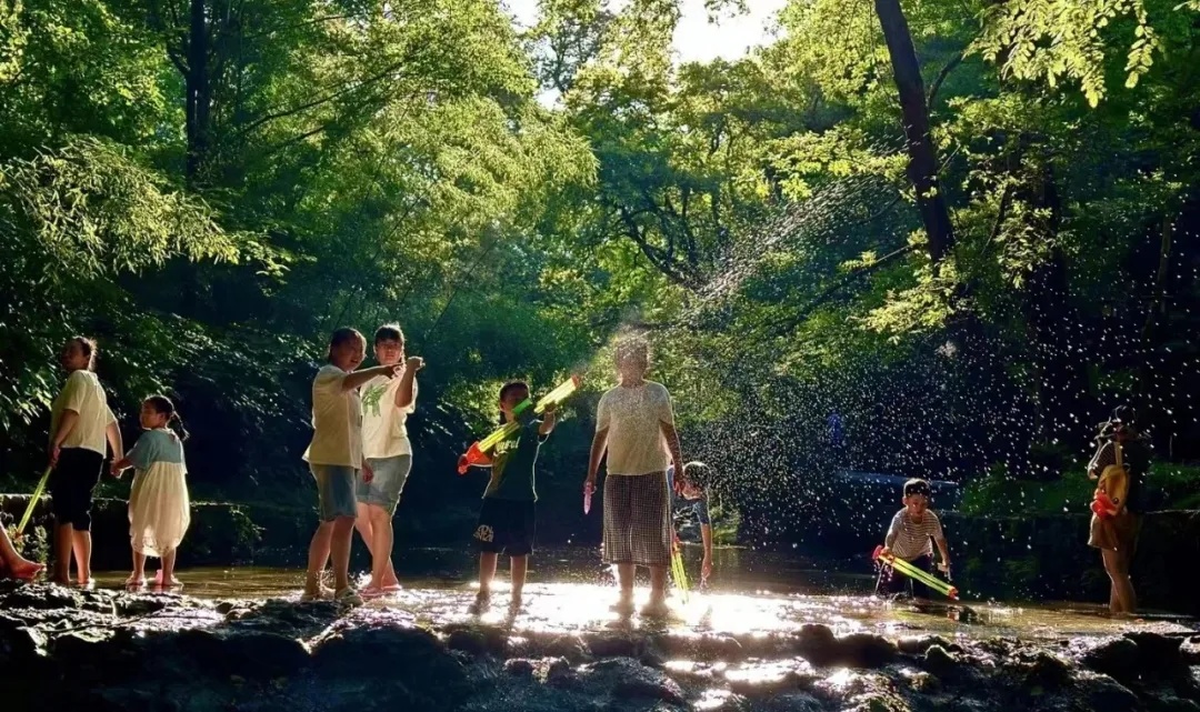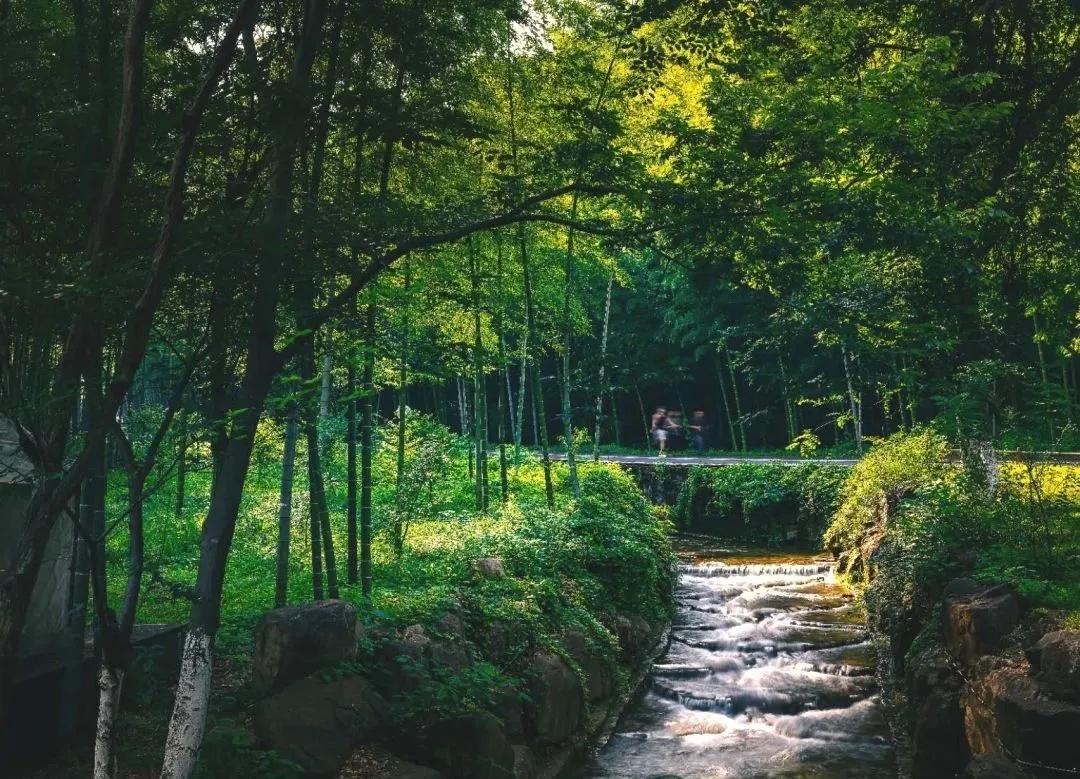 景区的驻马亭附近有安全浅水区,靠上游水质绝佳,水流平缓,非常适合小朋友玩耍;阳光透过树叶洒下斑驳的光影,走在林间栈道上,仿佛置身于天然的氧吧,每一口呼吸都裹挟着草木清香。